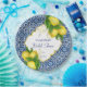 Blue tiles and lemon Amalfi Positano Mediterranean style bridal shower personalized paper plates, Morocco style carved border.