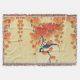 Blue Tit Bird,Paulownia Branch,Red Autumn Leaves Throw Blanket