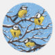 Hand drawn vector illustration of 4 blue tit birds in winter