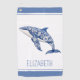 This coastal inspired blue and white golf towel features a floral toile dolphin and can be personalized with your choice of name or special text. Fun personalized gifts for beach gift bags.