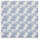 An intricate blue and white toile pattern featuring blooming flowers and winding branches, illustrated in a detailed vintage engraving style.