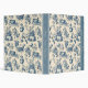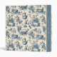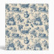 Blue French toile de jouy print of old time kitchenware with fruits and vines. Blue and cream with a denim blue ribbon for your personalized title.