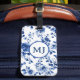 Blue Toile Initial Luggage Tag