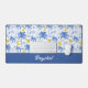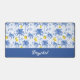 Blue Toile Palm Trees Lemons Monogram Name Desk Mat . Bring a splash of coastal charm to your office with this lovely desk mat, featuring a light blue striped background adorned with sketched blue palm trees and vibrant yellow lemons. Customizable white script lettering, for your name making it a stylish and personalized gift for any home or office.