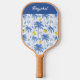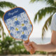 Blue Toile Palm Trees Lemons Monogram Name Pickleball Paddle