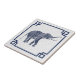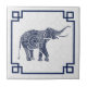 Blue Tones Cute Retro Floral Elephant 2 With Frame Tile