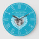 Topaz heart wedding anniversary clock personalize with your own couples photo, year of marriage, and names or relationship to you. The example reads Jasmina and Tommy Robinson 4th blue topaz Wedding Anniversary and your marriage and current date. Other matching topaz heart items are available. Blue topaz gemstone heart effect graphic art and design by Sarah Trett for www.mylittleeden.com