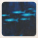 Blue Translucent Fish Silhouettes Square Paper Coaster