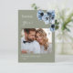Blue transparent flowers on a custom photo with a left aligned thank you text.