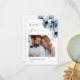 Blue transparent flowers on a custom photo with a left aligned thank you text.