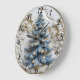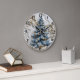 A beautifully crafted blue Christmas tree adorned with pearl-like ornaments and golden snowflakes, set against a soft, textured background of white and gold. The design captures the essence of winter wonder, creating a joyful holiday atmosphere.