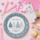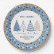 Blue Trees Dots Modern Text Christmas Holiday Paper Plate