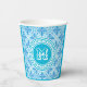 Blue Trellis Print Modern White Text Paper Cups