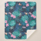 Blue Tropical Flower Garden Pattern Sherpa Blanket