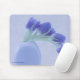 Blue tulips still life in a soft blue vase with a subtle grunge textured background.