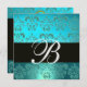 BLUE TURQUASE BLACK DAMASK MONOGRAM , aquamarine Invitation