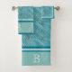 Beautiful contemporary aqua turquoise blue taupe grey coloured waves pattern. With room to customize or personalize with family monogram or initials of your choice. Ornate, whimsical and funky cool design available on a variety of fun, classy and fashionable matching bathroom and decorative powder room interior décor accents and accessories, and cute modern beach essentials for the trend-savvy and art-loving hip trendsetter, vintage retro look style or abstract geometric motif lover.