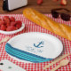 Elegant and classic Nautical Anchor Wedding Paper Plates with a simple boat anchor and an array of stripes in dark navy blue and turquoise. These nautical beach themed plates can be easily customized with your wedding details. For more customization options, click on the Customize It button.