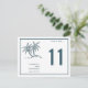 This table number card is clean and simple featuring two blue palm trees and a border around the outside edge in the same blue colour. The bride & groom's names as well as the wedding date are beneath the palms. The table number is clear and readable. The reverse side is the exact design so that it can be seen from both sides. It's perfect for tropical, beach, coastal, seaside or ocean wedding decor.