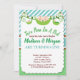 Celebrate your twins birthday party with this twins Two Peas In A Pod Couples birthday party invitations. This two peas in a pod birthday party features 2 babies in a green peas pod on stripes background. perfect for twins birthdayparty.