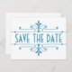 Simple et élégant Fancy Ornamental Enregistrer la date Carte postale en bleu et blanc avec une bordure fleurie de style art déco sophistiquée. Facile à customiser, il suffit d'ajouter les détails de votre mariage dans les champs de texte fournis. Cliquez sur "Customiser" pour trouver d'autres options de personnalisation.