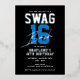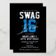 This blue varsity-style Swag 16 birthday invitation is perfect for anyone looking to add a touch of fun and youthful energy to their celebration. The design features bold, eye-catching colours and a classic varsity font that will make any recipient feel like they're part of the team. The invitation includes all the necessary details, including the date, time, location, and RSVP information. This invite is sure to set the tone for a memorable and exciting celebration of this milestone birthday. If you are not celebrating a 16th birthday you can alter the age on the invite as preferred.