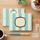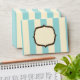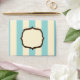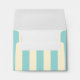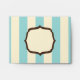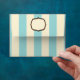 An envelope featuring a blue and white striped design covering entire outside surface. Fancy frames on front centre and back on flap.