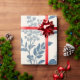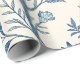A detailed vintage floral illustration in blue tones, featuring delicately drawn branches, leaves, and blossoms on a light background, creating a classic and elegant botanical look. Toile-de-Jouy