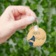 Quirky and unique Vintage Gramophone Keychain in dark blue featuring a silhouette of an old-fashioned gramophone and a cascade of musical notes on a digital art rendered paper background. This chic key fob will keep your keys handy with vintage flair and is perfect for any music lover. Easy to customize, simply personalize with the text of your choosing. Click on the "Customize It" button to find additional personalization options.