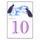 Navy Blue, Teal Vintage Peacock Wedding Table Number Card. This gorgeous wedding table number card design is perfect for a Vintage Wedding with the ability to personalize with your monogram initials. Its unique design with Two Beautiful Peacocks on Vintage Banner and text "Mr. and Mrs." in a dark blue font, create a unique, stylish wedding table number card. Elke Clarke© Please order one table card with the first number on it. Then change the number in the edit menu and add the next table number card to your cart until you have one unique card for each table number in your cart. Need help or would like a different colour combination, please contact luxuryweddinginvitations@gmail.com