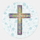 Blue Vintage Style Faith Cross Classic Round Sticker