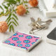 An illustration of a blue violet flowers pattern in pink background for spring time. This floral design is a gift idea for girly things lovers, spring and summer seasons lovers.