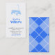 Enfants personnalisés appelant / carte de date de jeu. Une simple silhouette bleue d'un wagon orne le haut de la carte et un motif bleu Jacquard recouvre le côté arrière. Personnalisez le texte, avec les informations de votre enfant. Fait de belles cartes pour organiser des fêtes d'anniversaire et jouer des dates avec d'autres mamans.