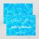 This refined blue wedding design features a luminous water texture with a soft framed layout, creating a modern yet romantic aesthetic. Ideal for seaside resorts, Mediterranean venues, island weddings, and waterfront ceremonies.