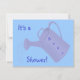 Cute painting of a blue watering can for a baby shower is printed on custom invitations. Easily customize the text on the template forms.