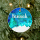 Blue watercolor abstract ocean design ceramic ornament