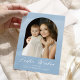 Elegant Easter card featuring your photo inside of an arch frame with a blue watercolor background. The phrase "Easter Wishes" is displayed below in a white calligraphy script. Personalize the front of the blue Easter photo card by adding your name(s). The card reverses to feature an additional photo with the year or custom text shown below.