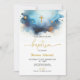 Blue Watercolor Boys Gold Baptism Invitation