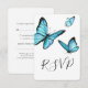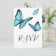 Blue watercolor butterflies wedding RSVP Card. Elegant choice for summer weddings. Part of a wedding collection. Card with Meal Choice.