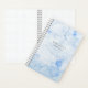 Elegant notebook with your name and description over a hand painted blue watercolor background.