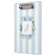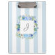 Blue Watercolor Floral and Stripes with Monogram Clipboard