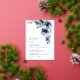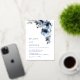 This elegant contemporary wedding invitation features watercolor painted 3D blue flowers and 3D text on a white background.