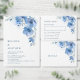 This elegant contemporary wedding invitation features watercolor painted blue flowers on a white background.