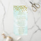 Custom wedding program in light turquoise blue watercolor pattern with gold confetti. Please note gold is photographic effect only.