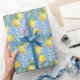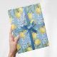 Blue Watercolor Lemon and Flowers Wrapping Paper