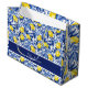 Blue Watercolor Lemon Pattern Monogram Name Large Gift Bag