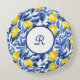 Blue Watercolor Lemon Pattern Monogram Round Pillow