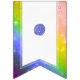 Personalize this colourful watercolor typography bunting banner with any word or phrase 16 letters or fewer. The rainbow background is eye-catching bright, and the blue watercolor galaxy / snow fall watercolor lettering gives it a hand-made vibe. Phrases that fit nicely with one space at beginning and end include "Happy Birthday," "Under the Seas," "Happy Hanukkah," and "Celebrate Love." "Merry Everything" and "Believe in Magic" are exactly 16 characters. For blanks / spaces, use ALT + 7 {numeric keypad} for a round dot / bullet.