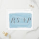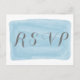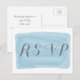 Trendy and stylish Watercolor Wedding Response Postcard with a rectangle brushed watercolor look blue background. This elegant and modern RSVP postcard is easy to customize with your wedding details. For more customization options, click on the Customize It button.