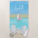 Blue Watercolor Simple Coastal Beach Sailboat Towel